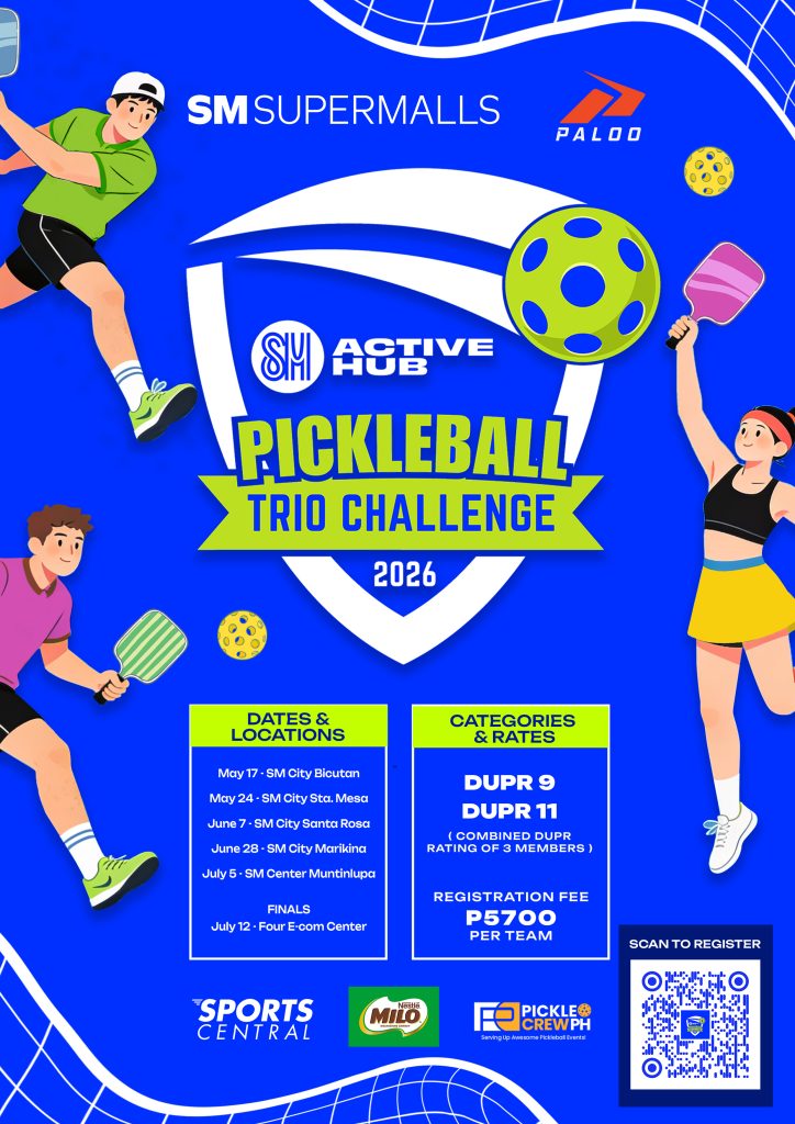 The SM Active Hub Pickleball Trio Challenge puts a fresh spin on the fast-rising sport by adding a team-based format to the mix. Rather than going solo, players will compete in groups of three — with each team required to include at least one woman, making the tournament as inclusive as it is competitive.